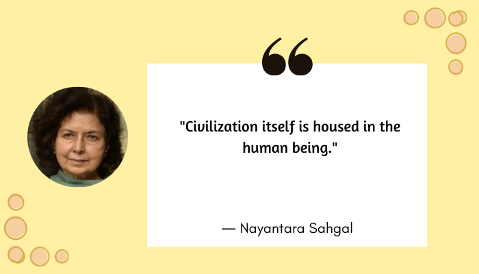 Nayantara Sahgal is an inspiration for all generations. So, here are some inspiring and \thought-provoking quotes by her -